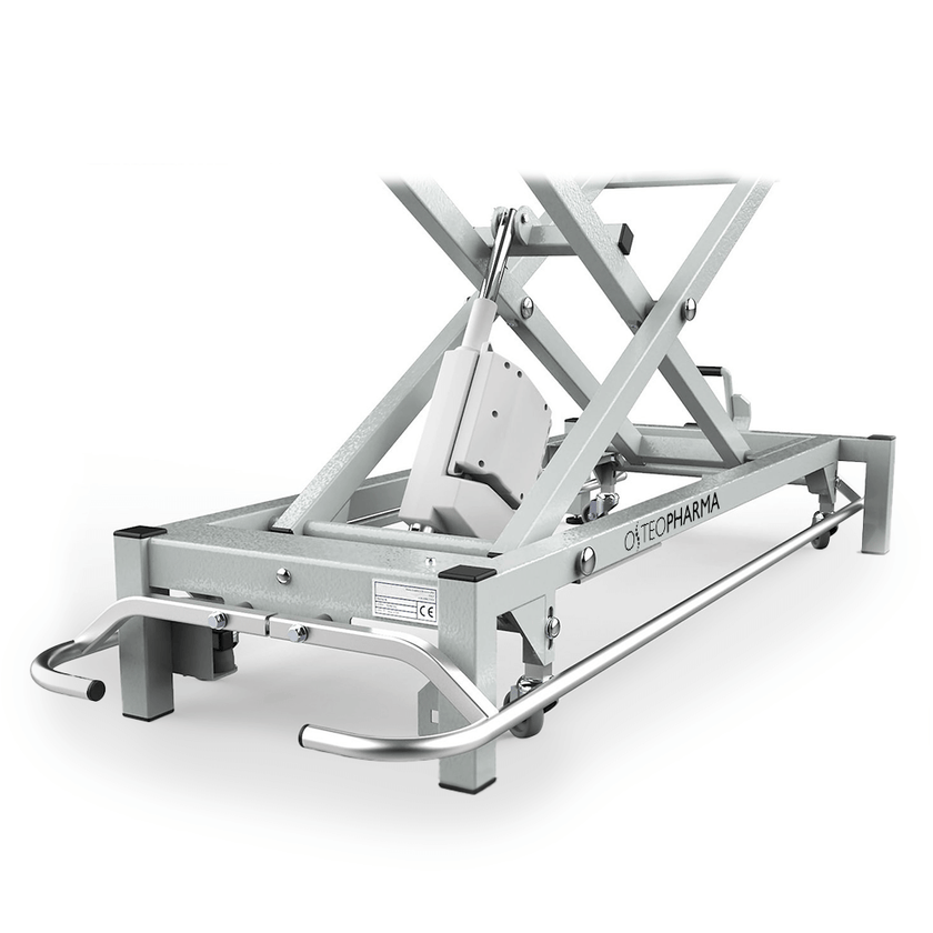 Electrically operated bed composed of 4 sections: 1 main section and a long version headboard with a pair of adjustable armrests integrated. The combination of the 3 sections (headboard, seat and legs) allows the Trendelenburg and "kyphosis" positions to be assumed.