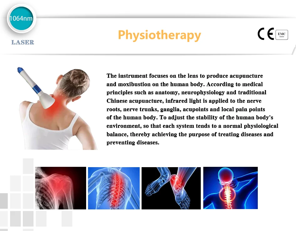 Activates healthier cells or tissues, relieves pain, accelerates tissue repair and promotes healing. During the operation, the laser energy of the instrument automatically stops when the temperature reaches a certain limit, avoiding burns. This ensures safe and comfortable treatment.