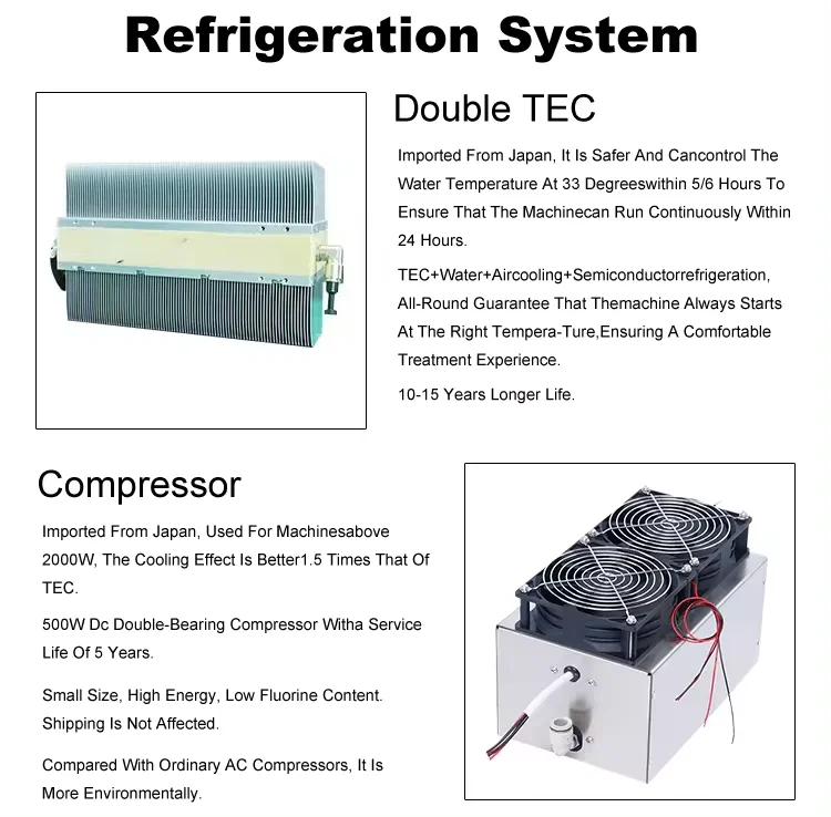 - Cooling system : Semiconductor refrigeration + water + constant temperature air cooling