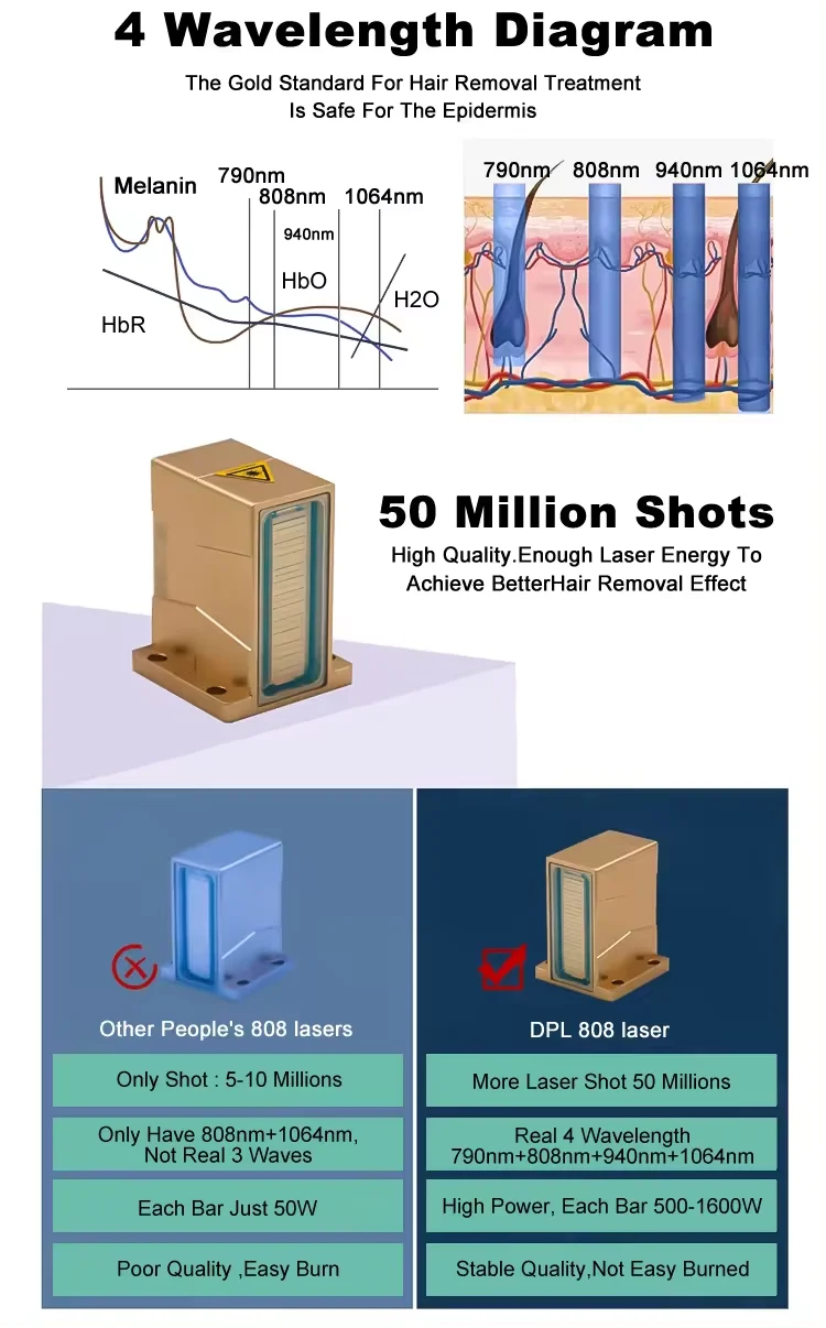 Diode Laser Hair Removal with 4 Wavelengths (790nm, 808nm, 1060nm, 940nm)