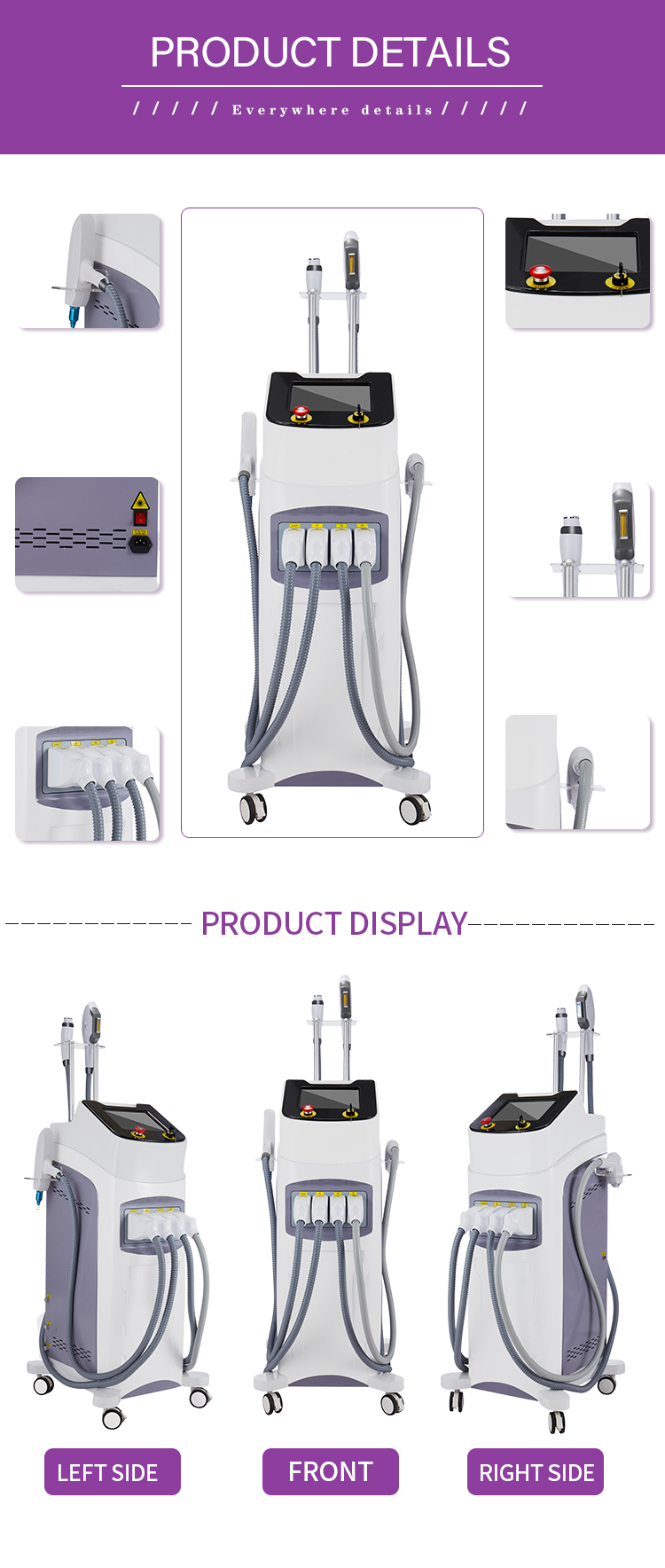 The multifunctional cosmetic device is a complete and efficient facial care system. It combines four main technologies: skin photorejuvenation, radio frequency (RF) for skin tightening, 808nm laser hair removal and YAG laser cosmetology.
