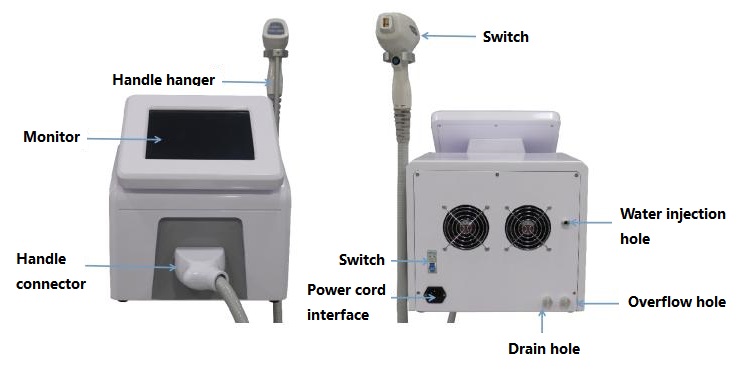 Portable 808nm diode laser hair removal machine.
