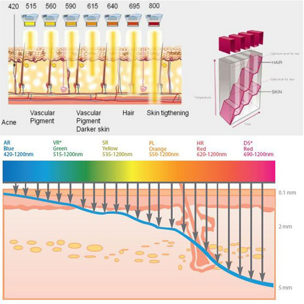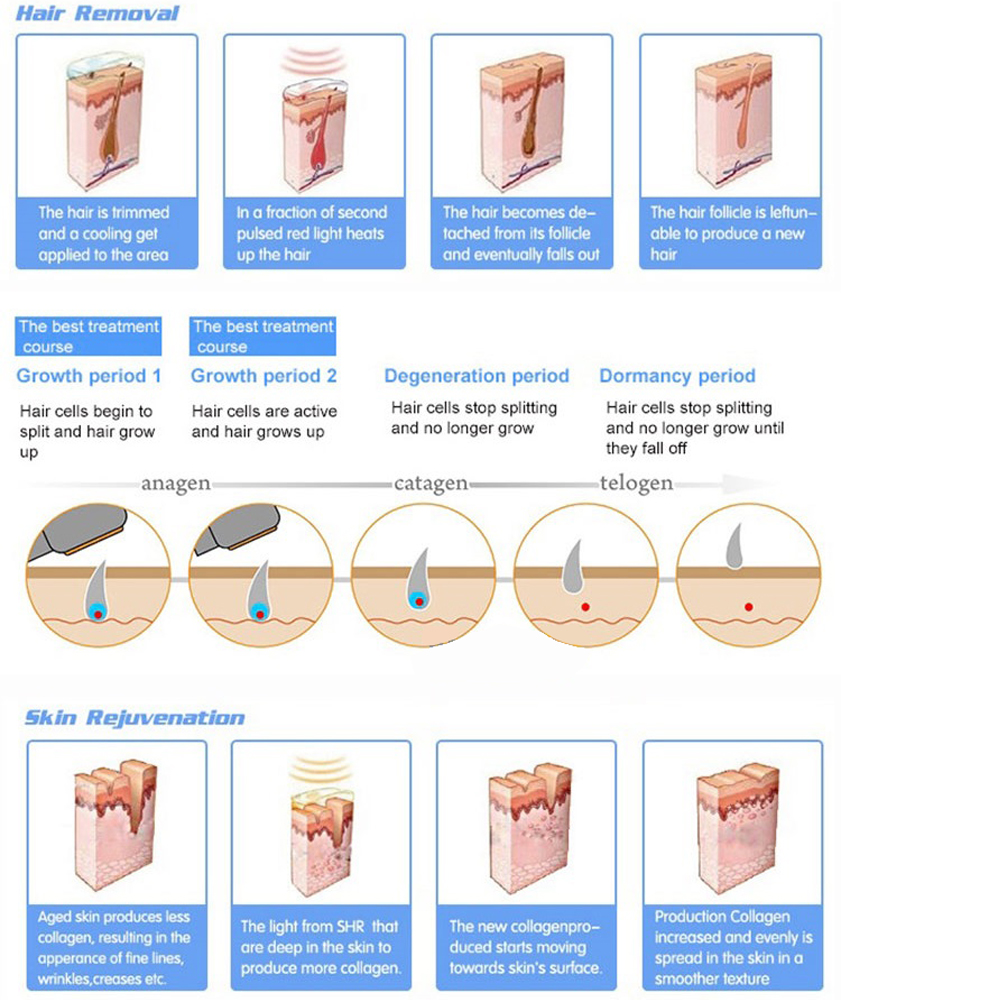 - La tecnologia OPT (Optimal Pulse Technology) garantisce un'energia regolare e stabile per ogni impulso. Gli impulsi successivi agiscono meglio sul derma, ottenendo risultati ottimali sui tessuti bersaglio con lesioni nel derma.