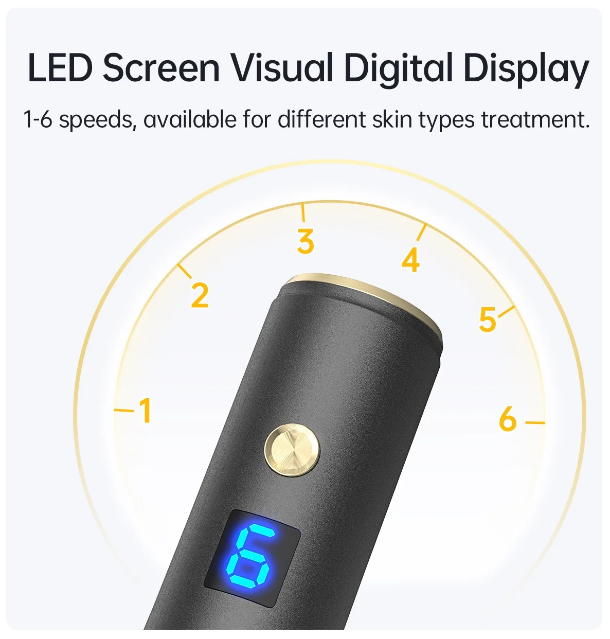 Punti di Velocità Regolabili: Il dispositivo è progettato con diverse velocità per adattarsi alle preferenze del trattamento e alle esigenze della pelle. Più velocità significano maggiore versatilità per affrontare diverse problematiche della pelle.