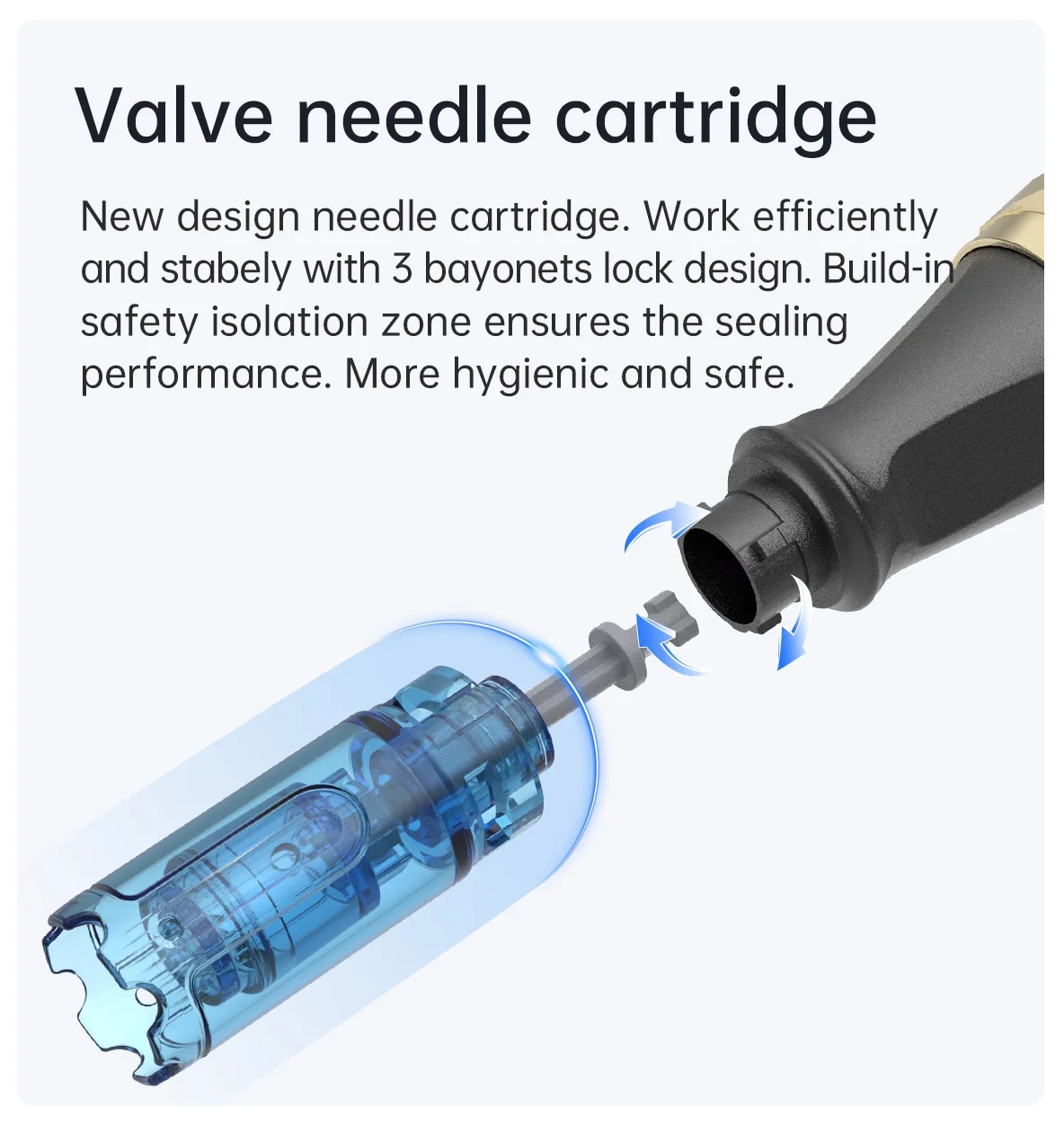 Aghi Intercambiabili: Il Dr. Pen è compatibile con vari cartucce di aghi, come 9 pin, 11 pin, 12 pin e 36 pin, per trattamenti personalizzati. Le diverse configurazioni degli aghi permettono trattamenti specifici per varie problematiche come cicatrici, rughe, macchie e molto altro.