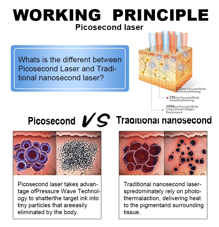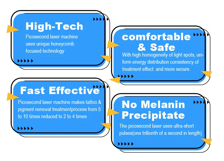 Il pico laser è uno strumento laser di fascia alta che utilizza la tecnologia laser a nido d'ape più avanzata al mondo ed è il dispositivo più popolare nel mercato della bellezza.