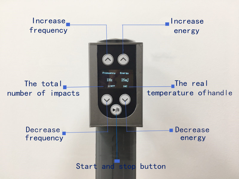- Il manico digitale può regolare la frequenza e l'energia, registrare il numero totale di colpi e la temperatura corrente.