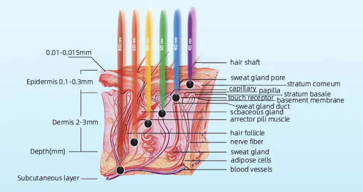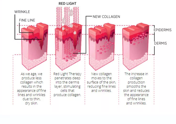 La terapia PDT emette luce a una lunghezza d'onda specifica, che penetra nella superficie della pelle fino allo strato di grasso sottocutaneo. Questa luce viene convertita in energia intracellulare, accelerando la crescita cellulare, aumentando la circolazione sanguigna e stimolando i fibroblasti a produrre collagene.