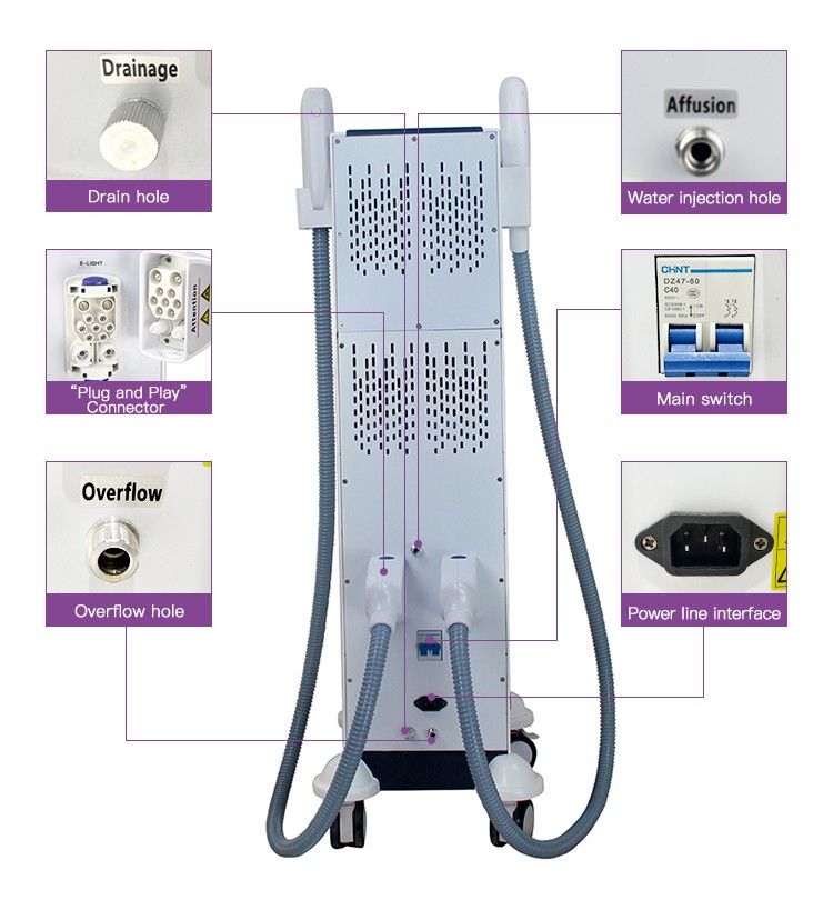 Macchina a 2 Manipoli per la Rimozione dei Peli con LaserSHR Elight