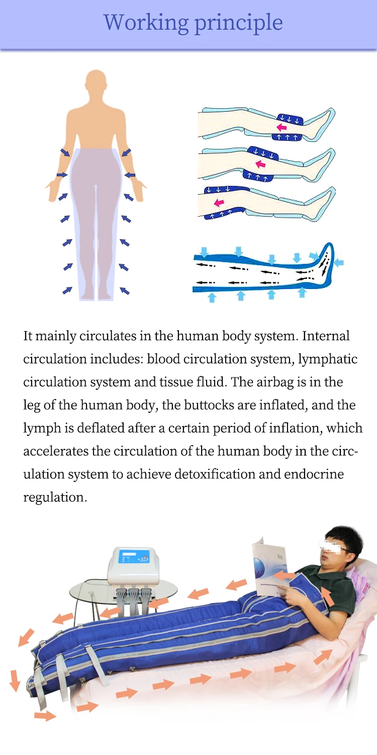 La pressoterapia è un trattamento esclusivo per la detossificazione. Il massaggio vibrante ad aria allevia gli arti dai fluidi linfatici e venosi in eccesso, favorendo le funzioni naturali del corpo per l'eliminazione delle tossine.