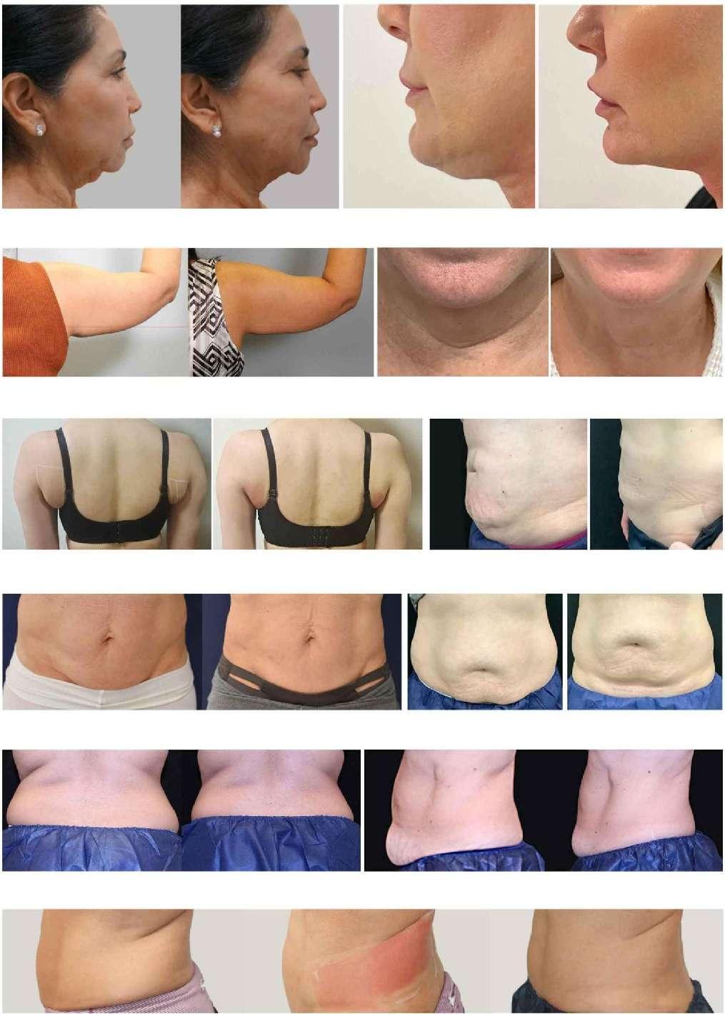 Le cellule adipose rimanenti si riorganizzano e si comprimono, riducendo lo spessore dello strato di grasso, con una diminuzione media del grasso del 24-27%. Allo stesso tempo, il calore stimola la rigenerazione del collagene nel derma, provocando la contrazione e il rassodamento immediato delle fibre elastiche e riparando i tessuti connettivi. Questo consente di ottenere effetti quali: