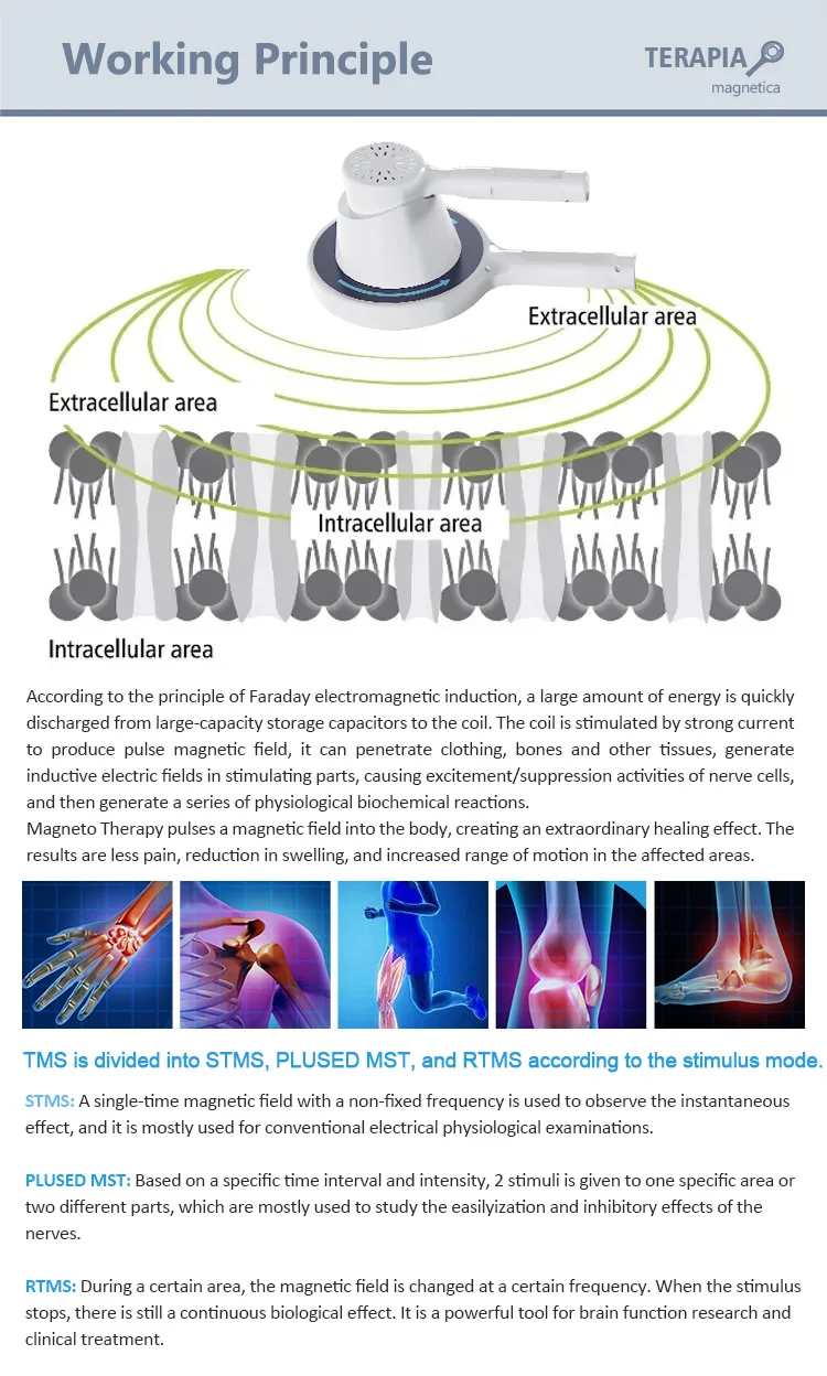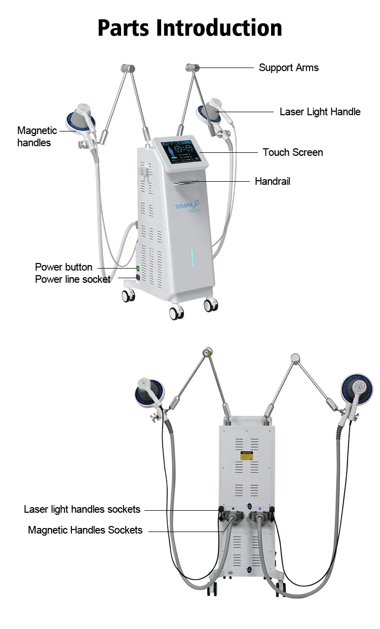 Capul electromagnetic inelar și capul NRS sunt conectate prin conectori special proiectați. Poate transmite impulsuri magnetice, pătrunzând adânc în țesutul uman. Între timp, lumina infraroșu apropiat se concentrează pe zona de diagnostic și tratament.