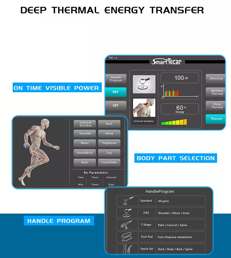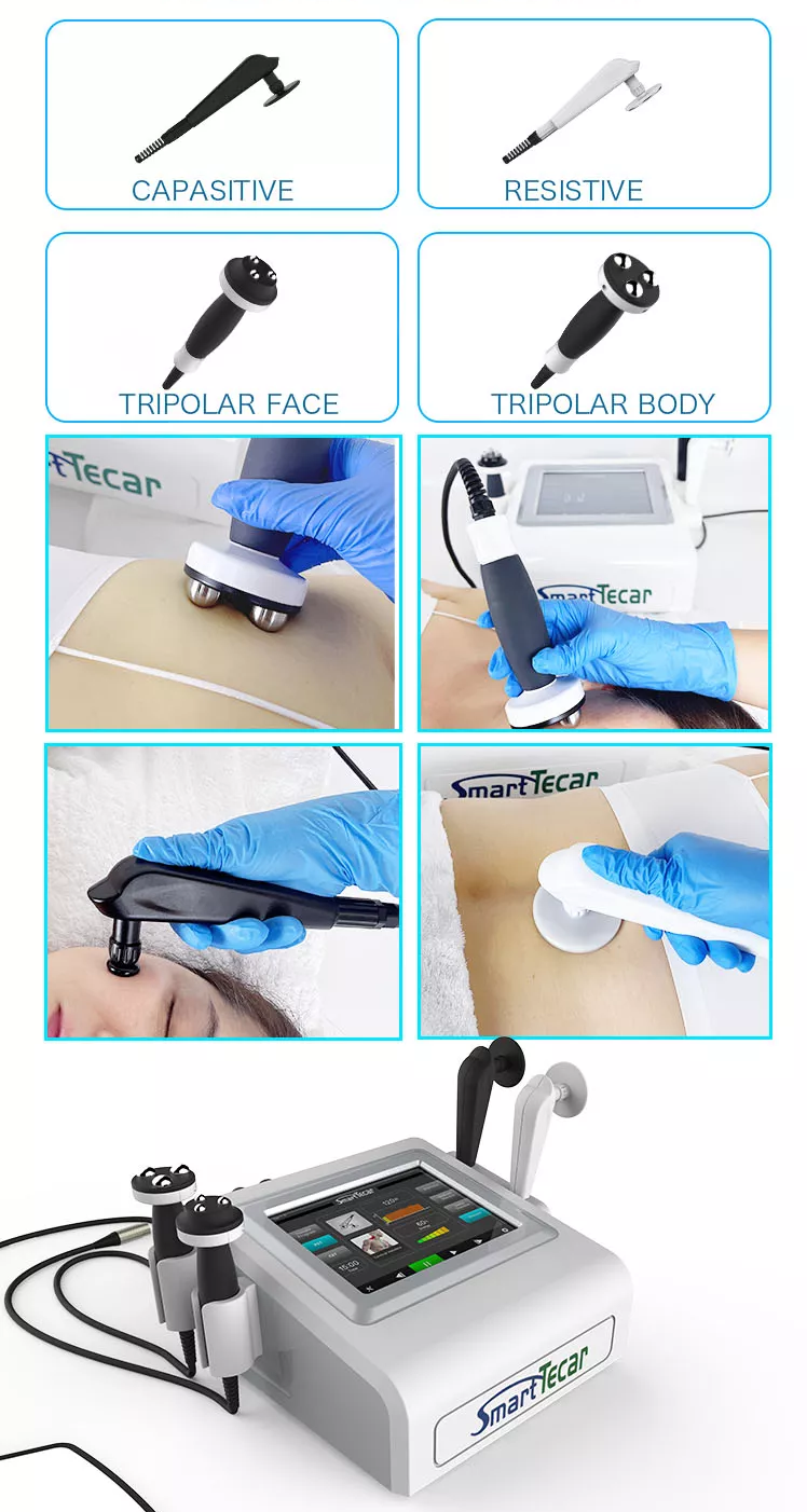 Aparat profesional de terapie Tecar 448kHz Fizioterapie pentru ameliorarea durerii CET RET RF monopolar